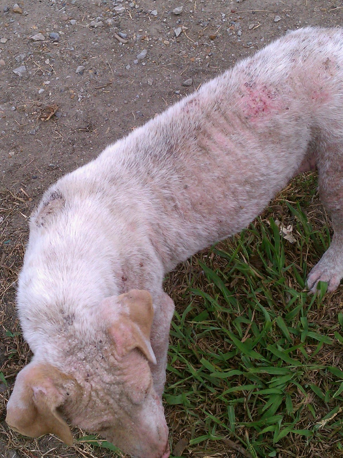 Poor baby had a secondary infection with open sores all over her body. No protection from the sun mind you as she is homeless.